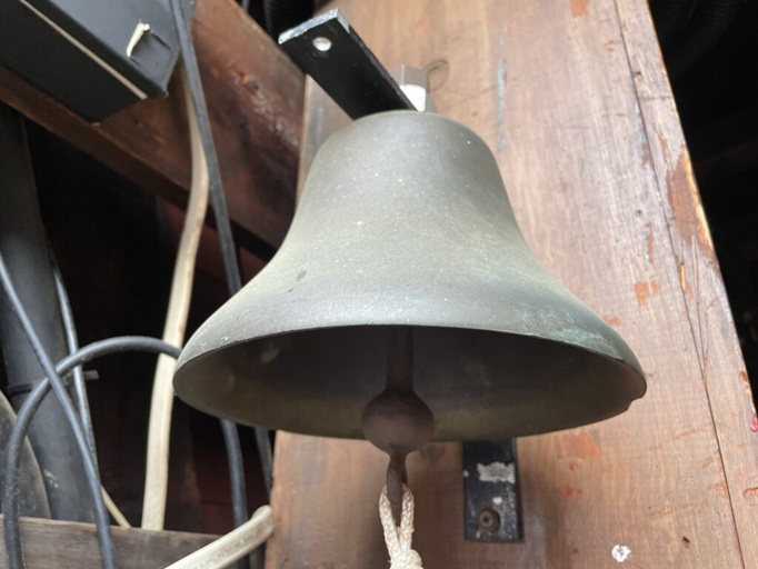 Captain Tom MacGuire rang this bell to get the audience’s attention at the start of each show on the Driftwood Showboat.