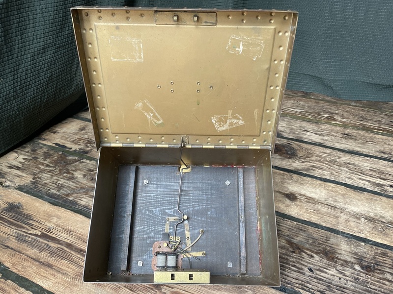 There is also a battery powered alarm that sounded when the false bottom was removed.
