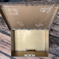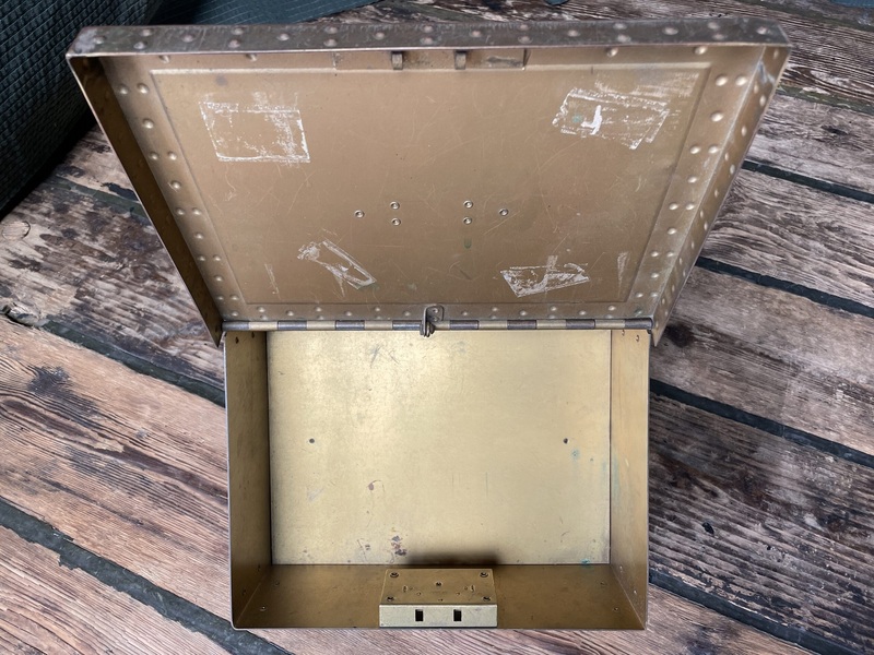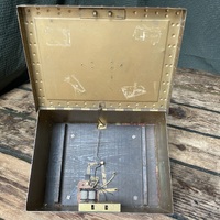 This cash box was used for ticket sales at the Driftwood Showboat. It has a false bottom secured by a chain that it takes two people to release, making a more secure place to store the large bills,